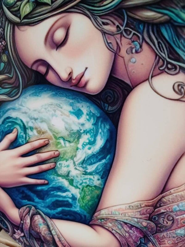 Gaia is de oude en geliefde Godin van de Aarde, de moeder van alles wat leeft. Zij vertegenwoordigt de levenskracht die door de aarde stroomt en de diepe verbinding tussen alle wezens. Als de oergodheid van de Griekse mythologie wordt Gaia vaak afgebeeld als de belichaming van de aarde zelf: vruchtbaar, voedend en beschermend. Haar energie is allesomvattend en brengt harmonie, balans en groei in de natuur.